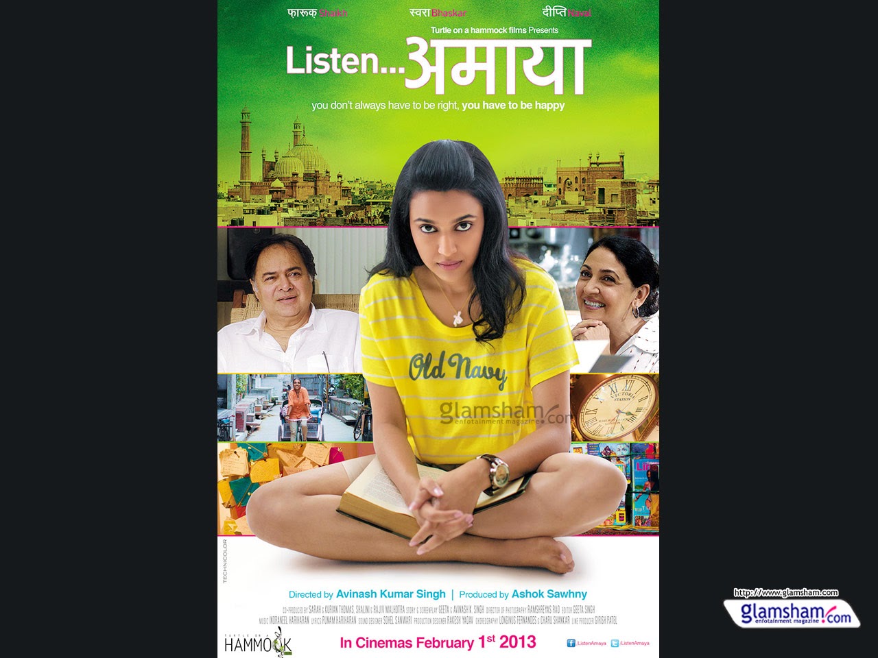 Synopsis : Listen... Amaya is a 2013 Hindi drama film directed by Avinash Kumar Singh, and starring Farooq Shaikh, Deepti Naval and Swara Bhaskar as leads. The film also marks the return of popular lead pair of the 1980s, Farooq Shaikh and Deepti Naval, in films like,Chashme Buddoor (1981), Saath Saath (1982), Katha (1983), together again on screen after 25 years.